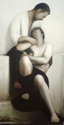 There is an artist who is quietly achieving a body of works worthy of note. His paintings could stand on their own merit based on technical mastery alone. They could (and do) commend awards with their imagery, which is compelling. But what makes this artist truly noteworthy is the way he presents his message...for he paints in parables. "What is a parable?" A parable is a short story that illustrates a timeless truth. Jesus used them all the time to illustrate the different facets of God. He told a parable about a prodigal son to illustrate God as a loving, forgiving and welcoming Father. He told a parable about seeds on the ground to illustrate why some people’s faith takes deep root and grows into a healthy, fruit-bearing vine when other people’s faith wilts and fades away. Jesus used parables to tell timeless truth in a way in which people could relate...hoping it would lead to an epiphany. One might say that parables are a linguistic artform, like poetry. And that would be right. However, in one artist at least, it appears to have taken on a visual artform, for it seems to be showing itself in the paintings of William Russell Walker. Walker, a young artist residing in north Georgia, trained at Columbus College of Art and Design. Since graduating in 1994, he has concentrated his efforts toward mastering his technique in oil painting. He is a narrative figurative painter whose style is a blend of Realism and Romanticism. He uses minimal backgrounds, choosing to focus his paintings on the pivotal message he is portraying. In his painting of Daniel in the Lion’s Den1, for example, Walker did not place the central focus of the painting on Daniel, as it is traditionally. Rather, what draws the eye is a majestic lion who is facing the viewer. He stands with ears pricked as if he has just heard or seen something. This is a timeless moment. Daniel has just been tossed into the den. These lions are hungry. They’ve been starved for just such an occasion. Ordinarily, they would have pounced on Daniel the second he was tossed in. Before he could even hit the floor, he would have been torn to shreds. But what really happened? Daniel landed on the ground with his breath knocked out of him. As he began to come to his senses, he sensed he was surrounded by growling beasts. They knocked up against him, breathing their fetid breath over him. “Oh-God-oh-God -- help!?” he might have chanted. But, while Daniel is still trying to rise to his feet in his befuddled state, something remarkable is happening in the den. A bright light begins to shine in the darkness. The lions sense a presence. They begin to shy away from the man. The pride leader, a massive shaggy lion, lifts his head and stares toward the source of light.… Just so, Walker captured the moment when God appeared in the lion’s den to rescue Daniel. The message of this painting isn’t about what Daniel did in there. It’s about what God did. In another of his paintings called “Beloved,” Walker painted a crucifixion scene in which the focal point is Mary Magdalene. Mary Magdalene had been a faithful follower of Jesus throughout his ministry. She loved Him with her whole heart and soul. Unlike others who fled, she followed Him right to the cross and stayed through the final brutal hours. She watched every indignity, every agony. Had she been allowed to approach, so might she have been captured on canvas -- holding fast to the foot of the cross with one arm, while the other is defiantly outflung to ward off the jeering crowds, her face a mask of grief. To stand in front of this painting is to feel as though one is standing on that holy ground. You can feel the dirt beneath your feet. Hear the heckling crowds. As you walk away, you might ask yourself, who is the Beloved captured so poignantly on canvas? Is it Mary? Or, is it Jesus? Or… are we the beloved? In “Beloved,” we see a parable illustrating the eternal truth of God’s love reaching out in a very personal way. Walker is fascinated with the experience of the human journey. "The people in the Bible were people like us," Walker says. "They were not exempt from human fear or frailties. I capture moments on canvas that are pivotal in a person's life. A moment when, with one decision, a life is changed...and perhaps history as well. I painted Pilate at the moment he was pondering a fateful decision, one that that all of us face. He asked himself, 'What then shall I do with this man, Jesus?' I want people who see my work to pause and consider their journey. Is it taking them where they want to go?" Take a closer look at these paintings. Perhaps one will speak just to you. · Winter – when life is more than you can bear, hold on. · Renaissance - means rebirth. Have you ever come through the battle and found yourself amazed that you survived? If so, this painting may speak to you. · Inward – do you sometimes hide yourself away? · Wishful – to see this painting is to experience again the yearnings of the heart. · Freely Given – no army could have taken from Him what He freely gave. · Pilate and Christ - as Christ lies unconscious, Pilate ponders the question every man faces…. · Battle Between Good and Evil - In this raging battle, "Good" may be bloody...but he's winning. See a parallel in your life? · Joy – a joyous angel with face upturned to the Father, bearded to remind us angels may be all around us... and may look just like us. · Listen To Me – an angel hovers in the air with fluttering wings. He's been sent with an urgent message. Is it for you? · Woman Bathing – captures a private moment in a hidden grotto. A woman inches out into the water. Her head is downcast, but her motion is forward. What is the message here? William Russell Walker speaks to the heart. He intuitively knows the message he is to paint. To produce these paintings is what he is designed to do, he says. It is his calling. 1Daniel in the Lion's Den is an 8' x 10' painting on pe